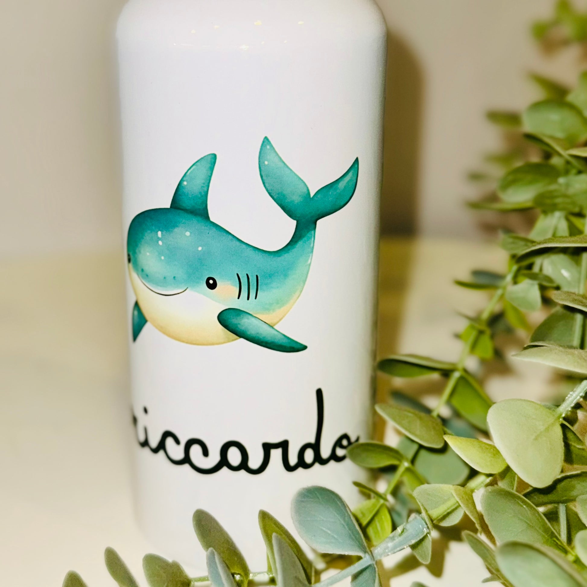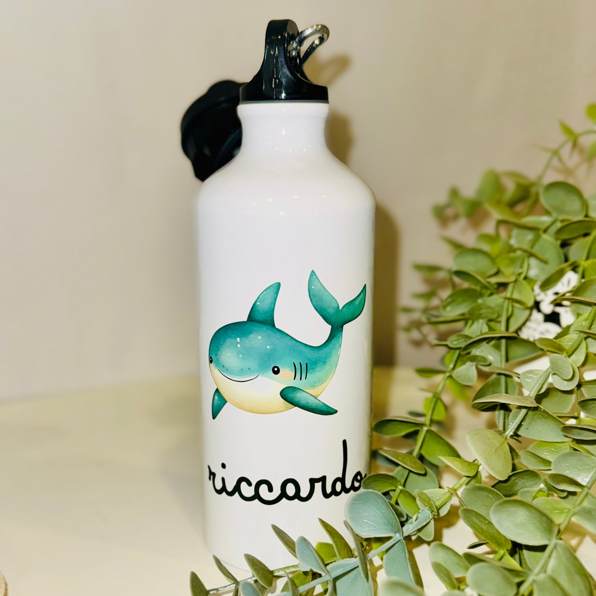 Borraccia in alluminio (600 ml) con doppio tappo, personalizzabile con grafica e nome.