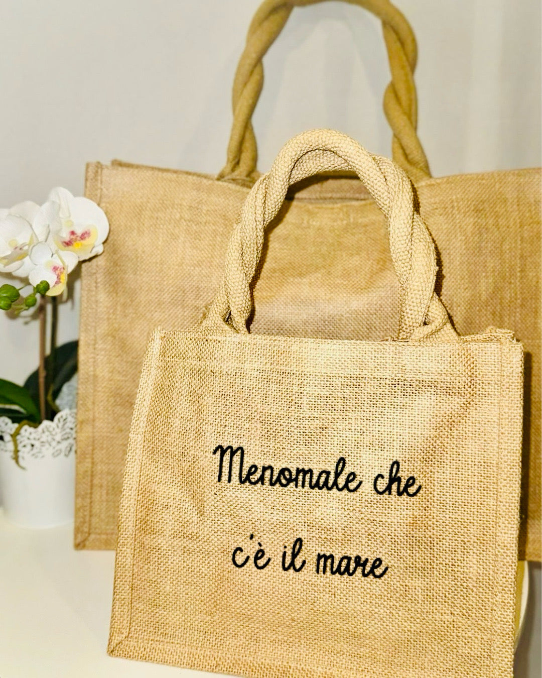 Borsa Juta personalizzata (iniziale + nome), disponibile in due formati: